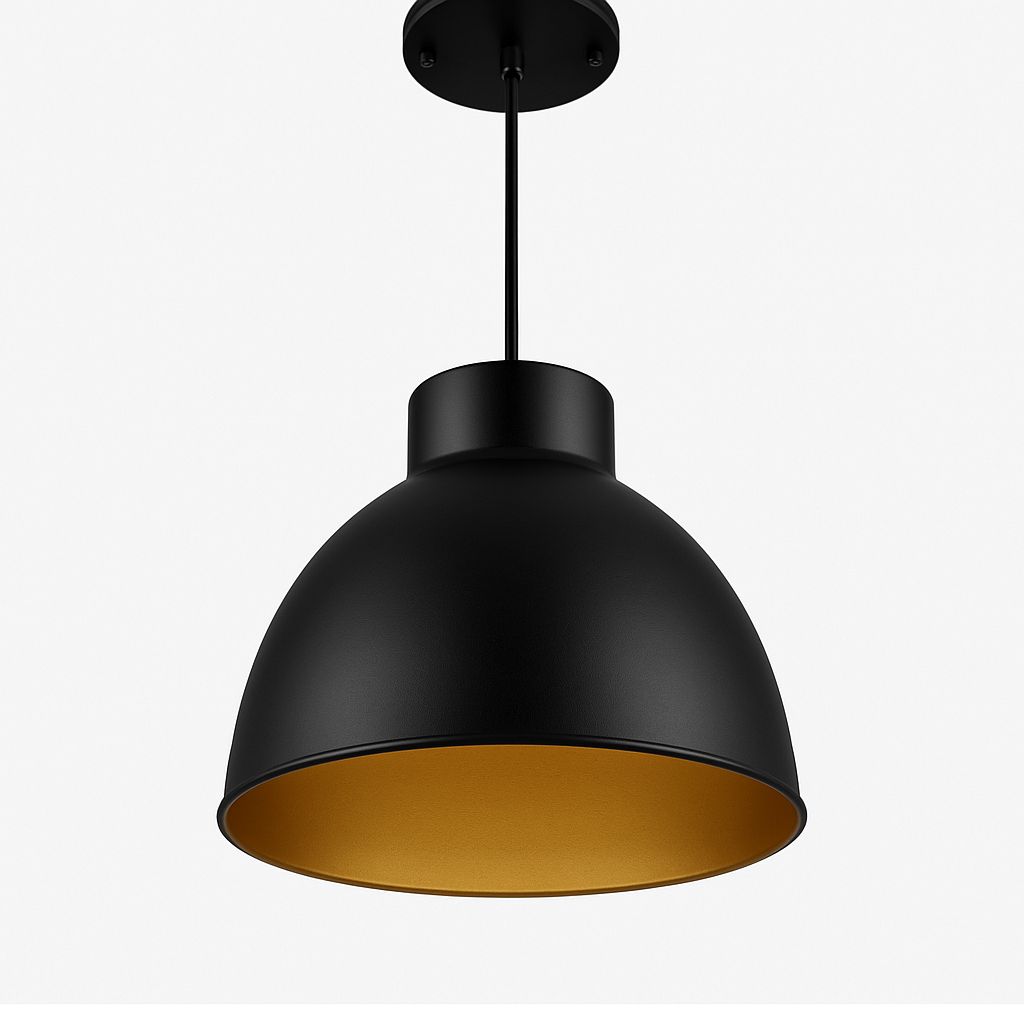 ✨ Esta campana colgante de 30 cm es perfecta para quienes buscan una iluminación decorativa con carácter. Su acabado negro mate en el exterior y dorado metálico en el interior aportan contraste y elegancia, generando una luz cálida y envolvente.