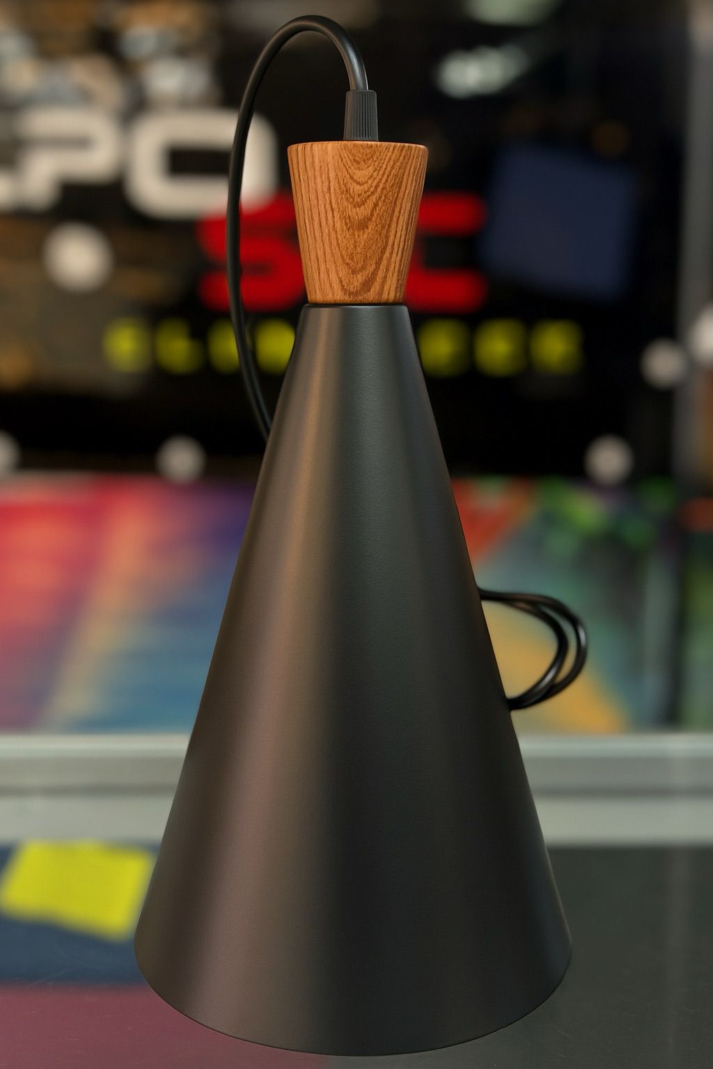 Campana Cónica – Negro – Detalle de Madera ✨