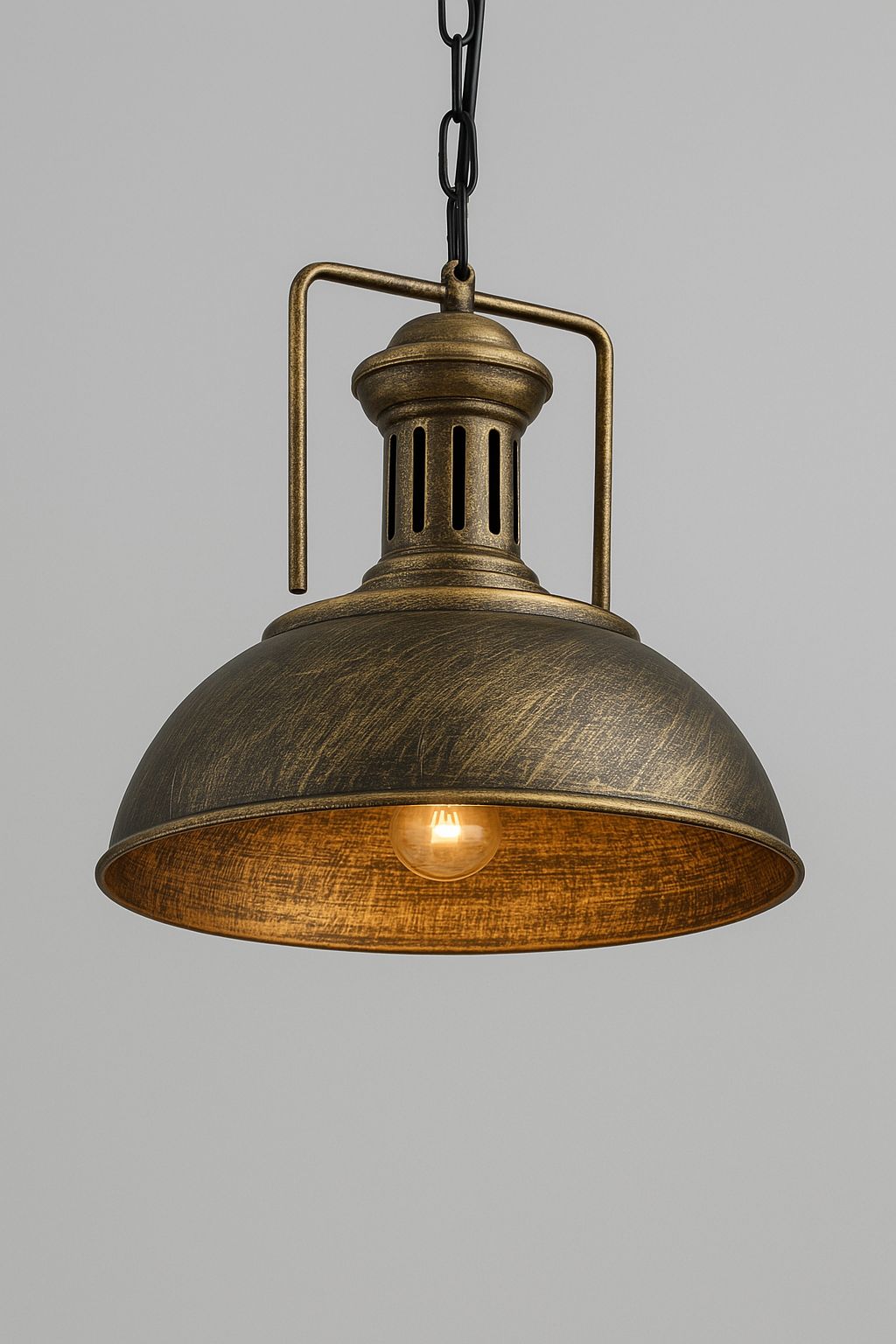 Añade carácter y autenticidad a tus espacios con esta lámpara tipo campana rústica, perfecta para quienes aman el diseño tipo industrial o retro. Su acabado envejecido y estructura metálica aportan fuerza visual, ideal para cocinas, comedores, cafés o locales con personalidad.