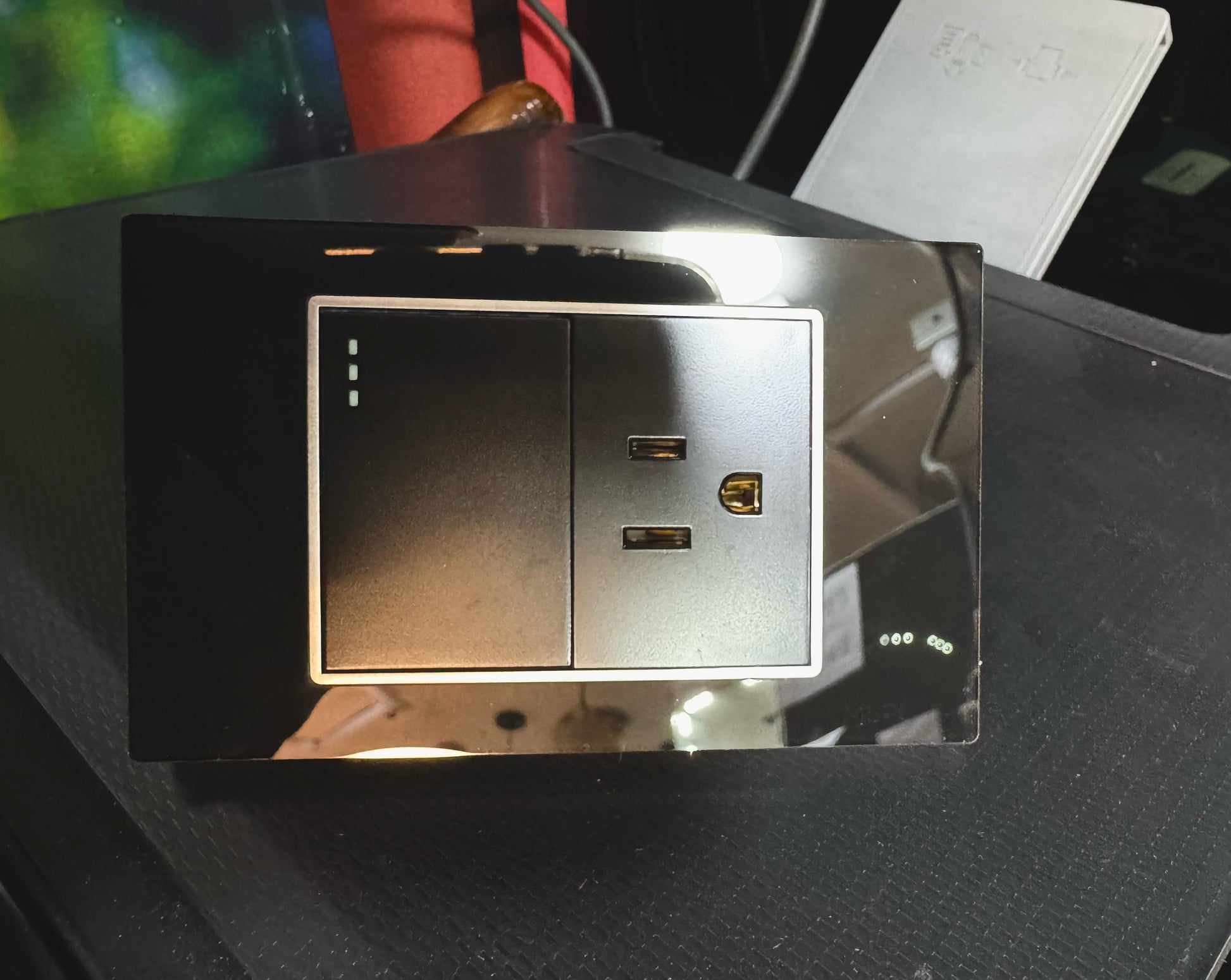 ⚡ El interruptor más toma Black Mirror combina control de iluminación y conexión eléctrica en un diseño moderno y sofisticado. Su acabado negro tipo espejo realza cualquier espacio con un estilo elegante y contemporáneo.