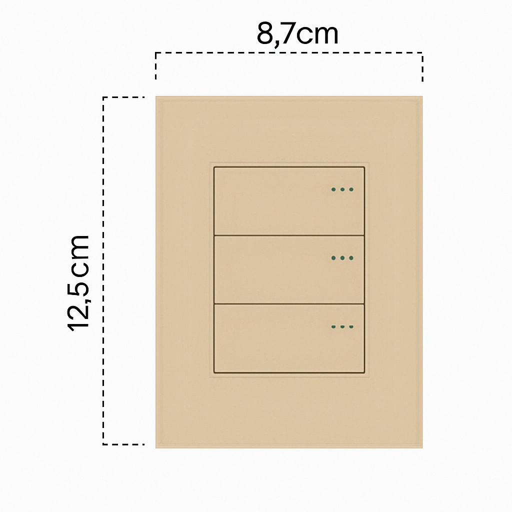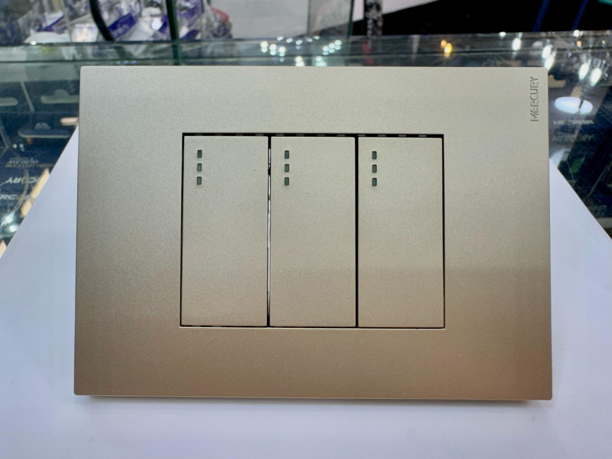 ⚡ El interruptor triple Golden Luxury ofrece el manejo de tres puntos de luz de forma independiente, con un diseño en acabado dorado matizado que aporta distinción.