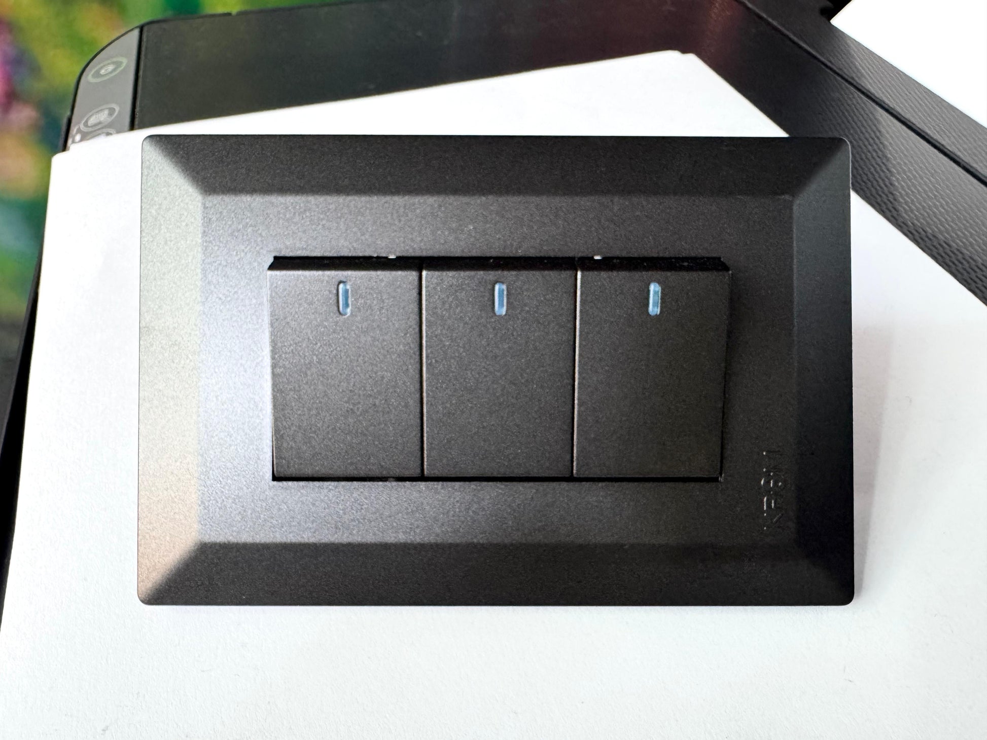 ⚡ El interruptor triple Vant Negra gestiona tres circuitos de luz de manera independiente, todo en un acabado negro mate moderno y sobrio.