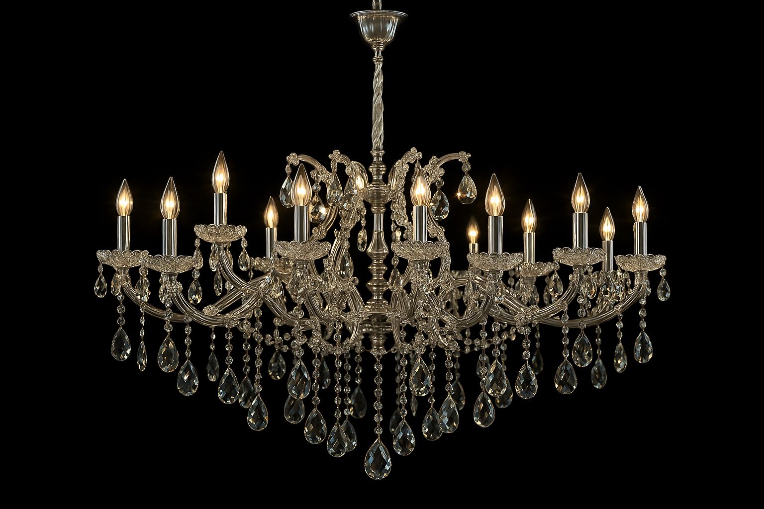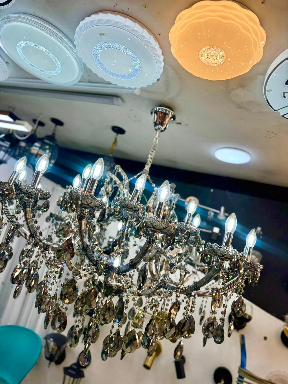 La Chandelier Humo de 25 luces es una pieza majestuosa que transforma cualquier espacio en una obra de arte. Su estructura en tono humo, combinada con cristales tallados y 25 brazos iluminados, ofrece un espectáculo visual lleno de brillo, sofisticación y glamour.