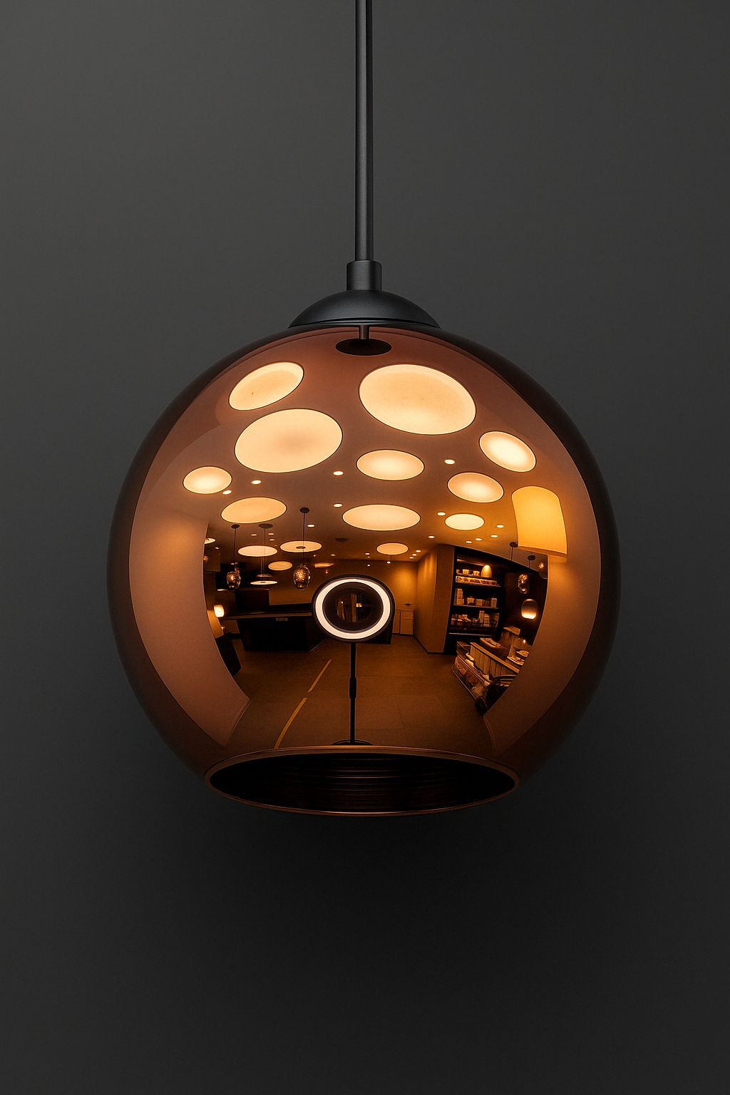 • Diseño sofisticado en forma esférica con acabado en oro rosa que refleja la luz de forma espectacular.