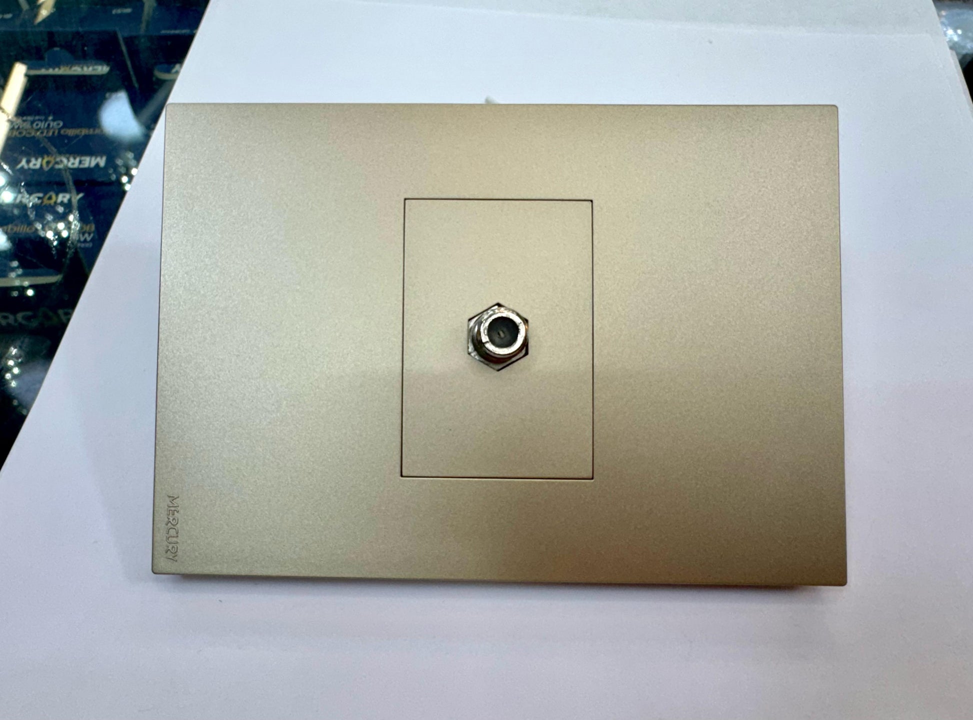📡 La toma coaxial Golden Luxury proporciona una conexión estable para TV o cable, con un acabado dorado matizado que complementa ambientes de diseño refinado.