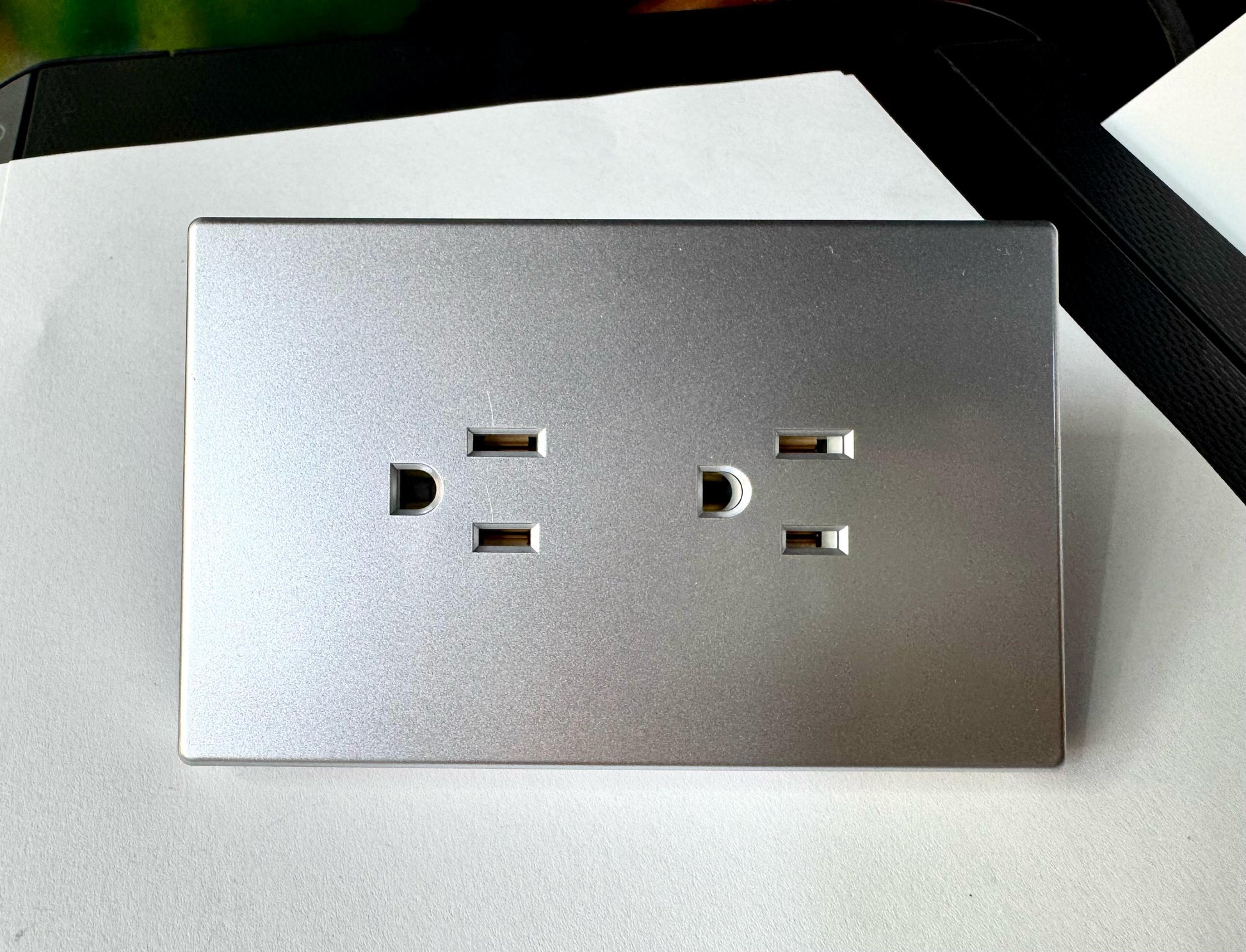 ⚡ La toma doble Betty Plateada ofrece dos salidas de corriente en un acabado plateado matizado, ideal para espacios que buscan funcionalidad con un estilo moderno y limpio.