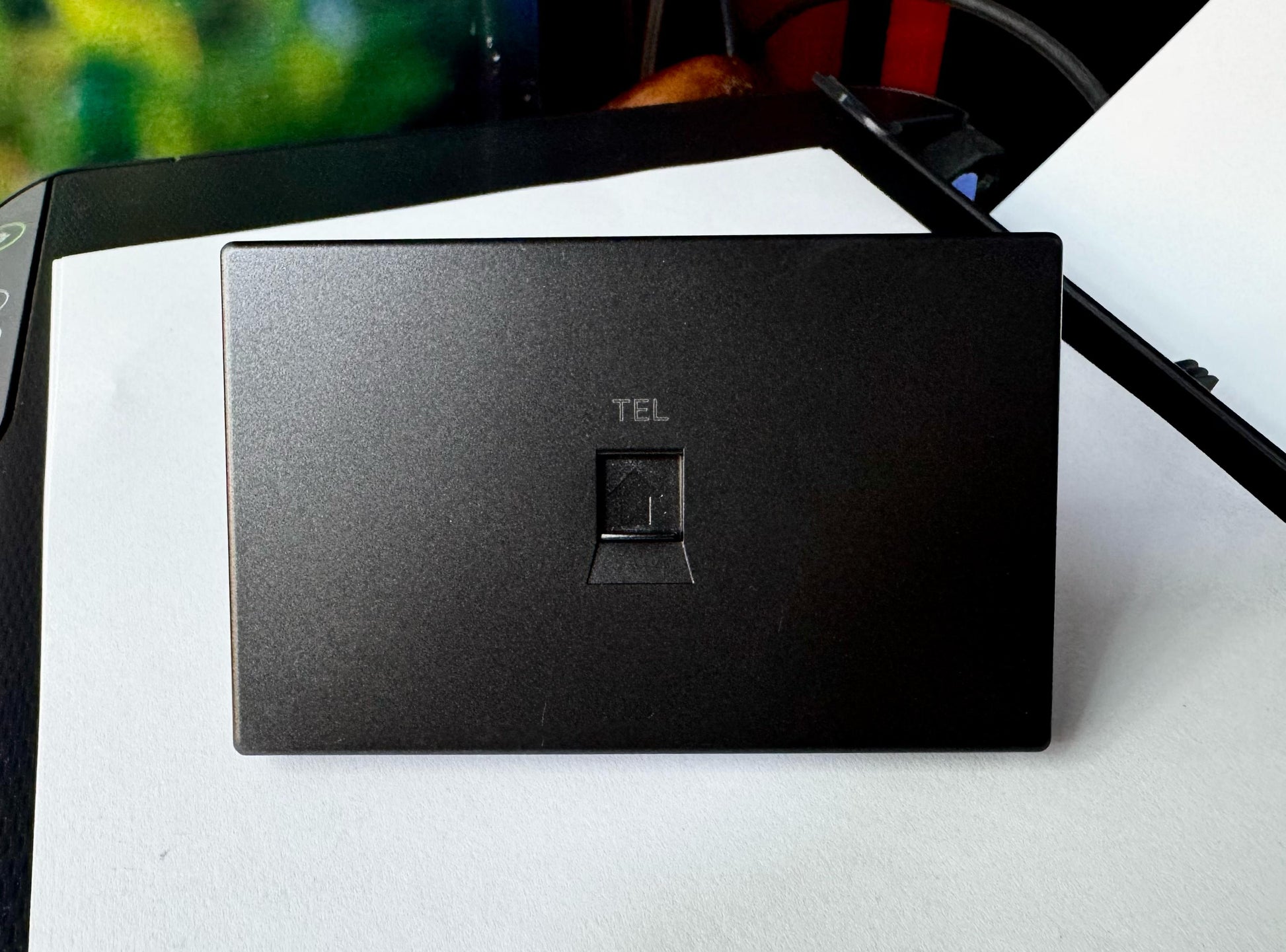 ☎️ La toma telefónica RJ11 Betty Negro ofrece conexión para línea telefónica en un módulo de acabado negro mate, manteniendo un estilo minimalista y elegante.