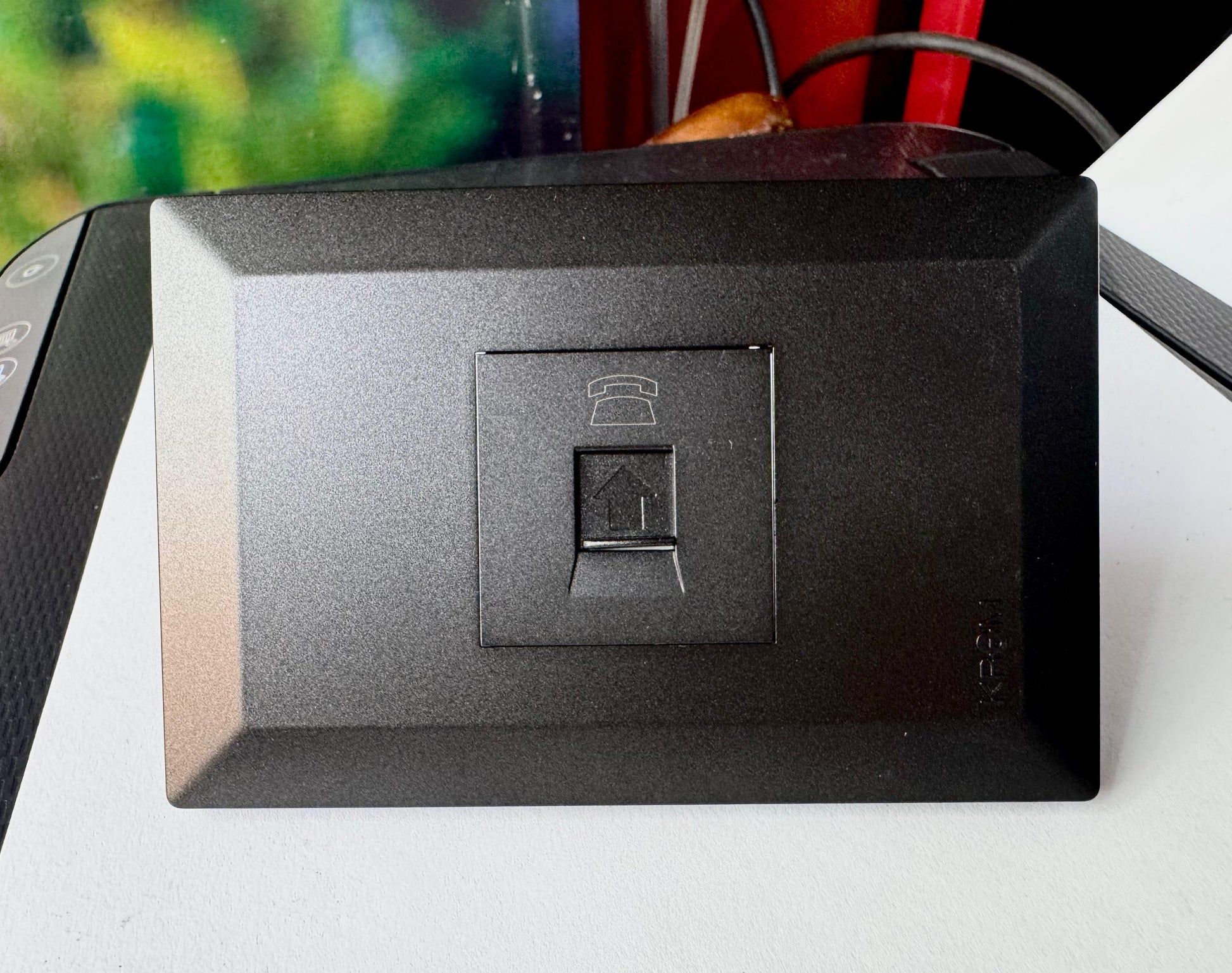 ☎️ La toma telefónica RJ11 Vant Negra ofrece conexión confiable para línea telefónica en un módulo de acabado negro mate, ideal para mantener la armonía en espacios contemporáneos.