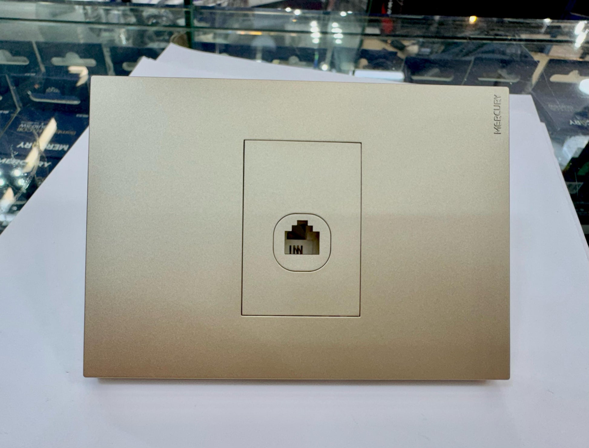 ☎️ La toma telefónica RJ11 Golden Luxury permite conexiones telefónicas discretas con un diseño moderno en acabado dorado matizado.